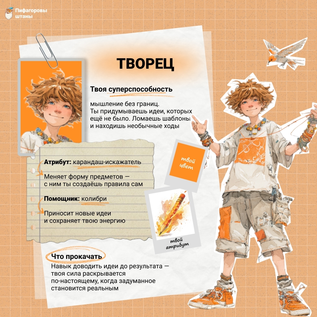 Ваш ребёнок креативный и гибкий, любит придумывать необычные решения и подходить к задачам нестандартно. В математике он способен находить оригинальные способы решения и предлагать неожиданные ходы