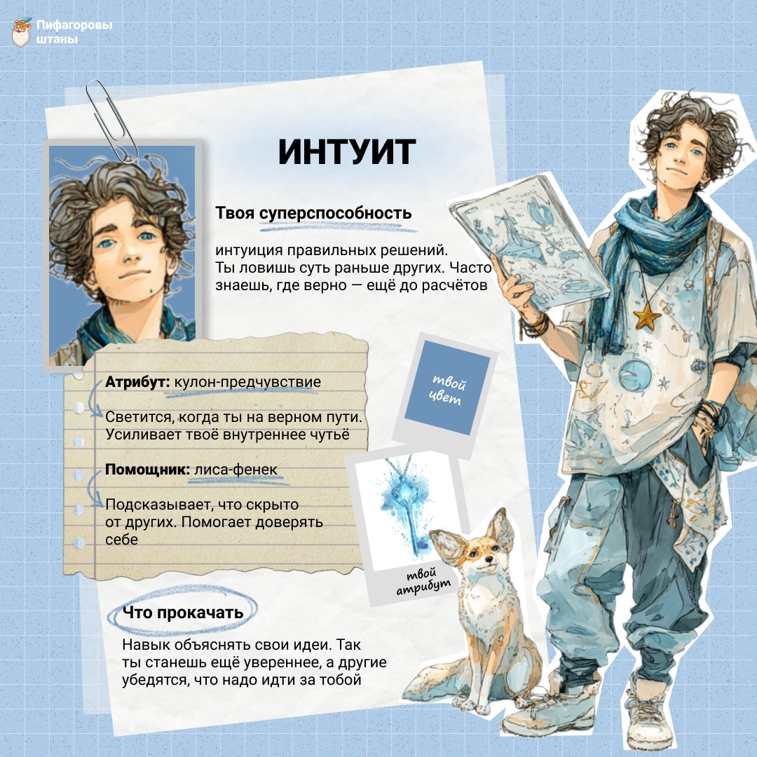 Ваш ребёнок действует быстро, полагаясь на догадки и ощущения, часто находит верные ответы, даже если не может сразу объяснить, как к ним пришёл. В математике он силен в задачах, где важно угадать закономерность или предсказать результат