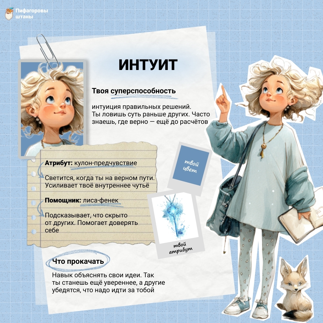 Ваш ребёнок действует быстро, полагаясь на догадки и ощущения, часто находит верные ответы, даже если не может сразу объяснить, как к ним пришла. В математике она сильна в задачах, где важно угадать закономерность или предсказать результат