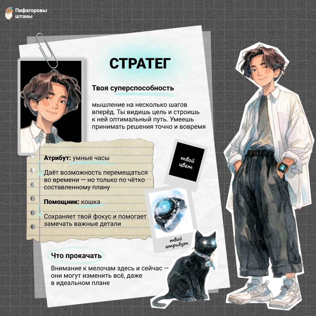 У вашего ребёнка основной тип личности — Стратег. Он умеет планировать, видеть логику и закономерности, мыслит последовательно и тщательно проверяет каждый шаг